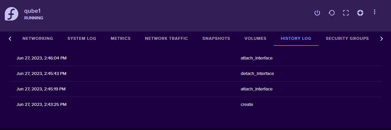 To view the history log of your Qube, go to Cloud -> Qubes. Select the Qube you’d like to view a history of. Scroll to the right and look for the “History Log” tab.