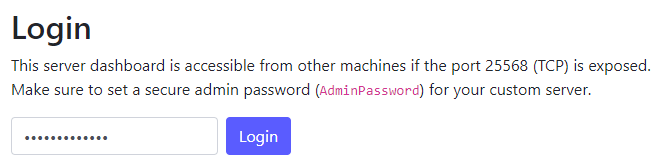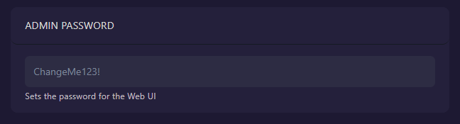 Admin Password. You will need this to log in to the Web UI. Be sure to restart your server after changing it