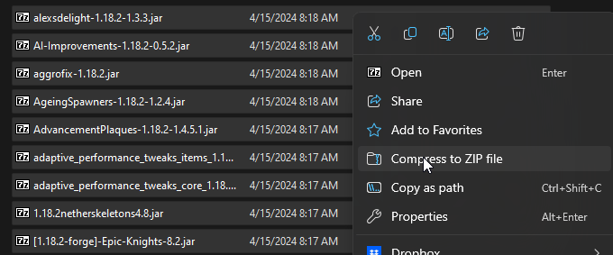 - Select all your mods and compress them to a