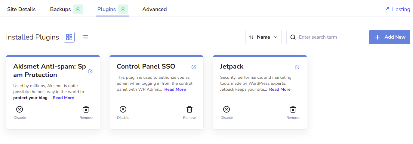 + Add New - Here you can search for the plugin you want to install. Once you’ve found one, you can install it by clicking the blue download button