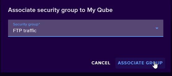 Click Associate. Select the Security Group you’d like to associate with your Qube.