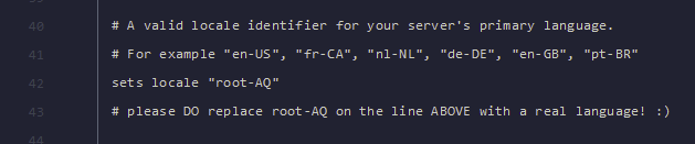 root-AQin the linesets locale "root-AQ"to set the language you want for your server