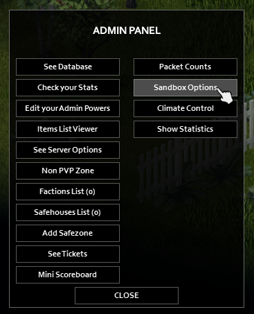 - Open Sandbox options by following the previous instructions