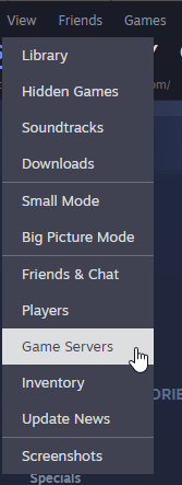 - Go to your Steam Library section and click the View button in the screenshot below. Once the drop-down opens, you can click on the Servers option.