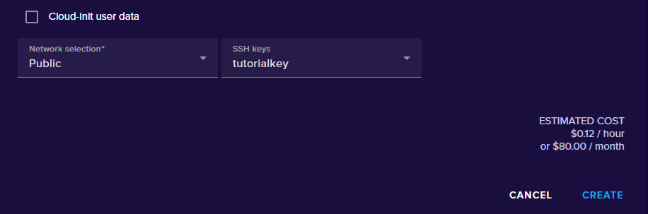 Lastly, select an SSH key to use, and if your OS supports it, you can also add a root password to log in with. Click Create and your Qube will begin being created.