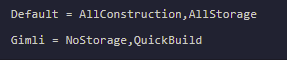| NoConstruction | Prevents the player from using any build or quick-build |