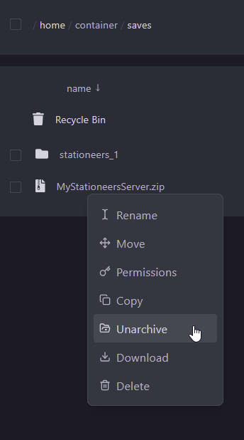 savesdirectory of your server. - Right click on your uploaded file and select