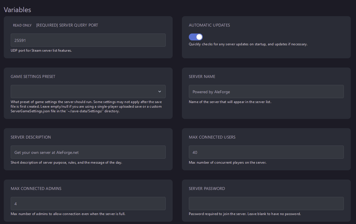 ServerGameSettings.json - Use your preferred file editor to change your settings