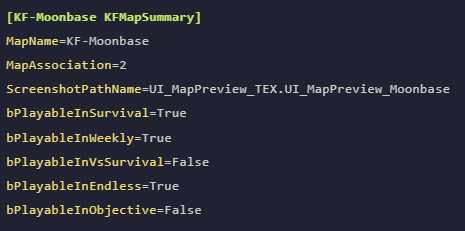 KFGame/Config/LinuxServer-KFGame.ini - Scroll down until you find the data stores for each of the Killing Floor 2’s stock maps