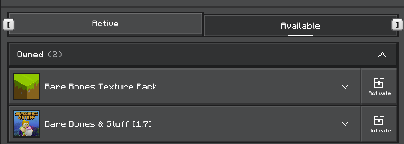 - Activate the packs you’d like to use and scroll back to