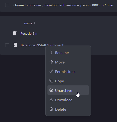 .mcpackfile you downloaded and upload it to this newly created folder - Right click on it select