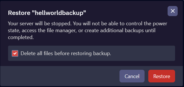 Your server will begin restoring.