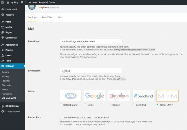 If you choose another SMTP server as a mailer, you would be prompted to add the SMTP server’s configuration settings.