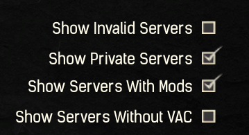 Keep in mind that if your server has any mods, has VAC disabled, or is private, one of these check boxes may be checked and hiding your server.