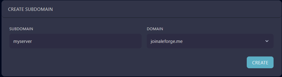 Create - You can now join your server using that subdomain instead of your servers IP. In this case, you would enter
