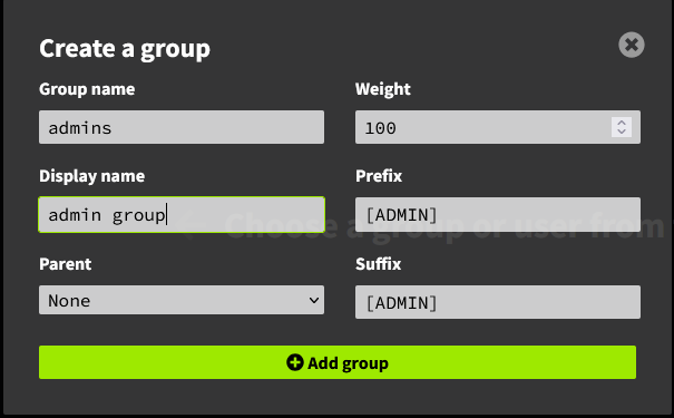 - In the case of a player having multiple groups assigned to them, the group with a higher weight will take priority