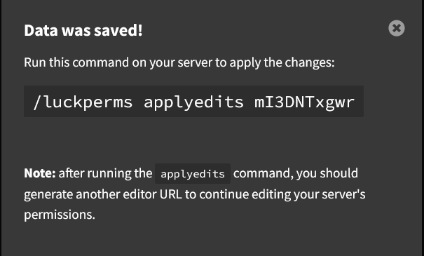 - Go back into Minecraft and run the command. This will apply your changes to the permissions
