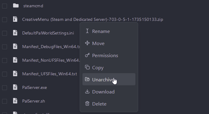 .zipfile for Steam and Dedicated servers - Upload this file to the root directory of your Palworld Dedicated Server