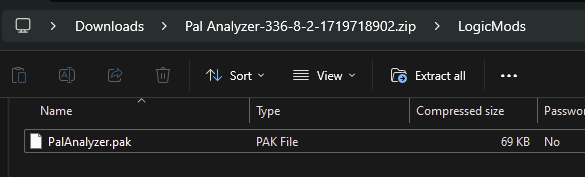 install the .pak file to Pal/Content/Paks/LogicMods