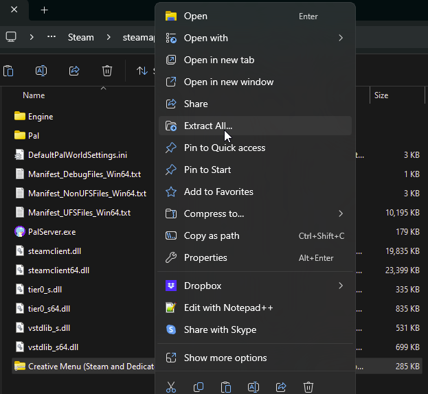 .zipof UE4SS toPalServer\Pal\Binaries\Win64 - Extract UE4SS