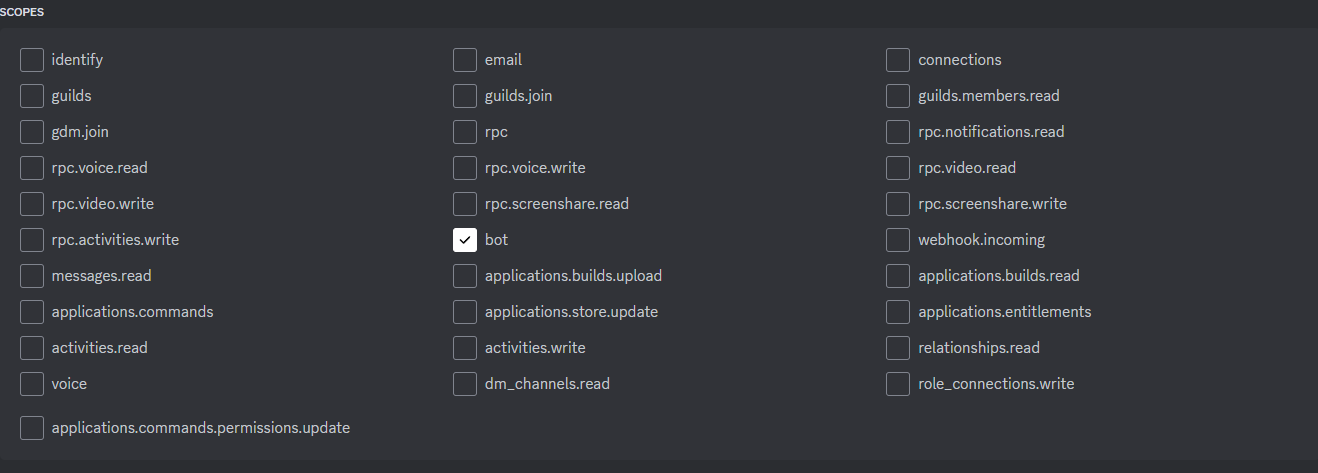 In order for our bot to be secure and have the correct permissions, we will have to enable OAuth2