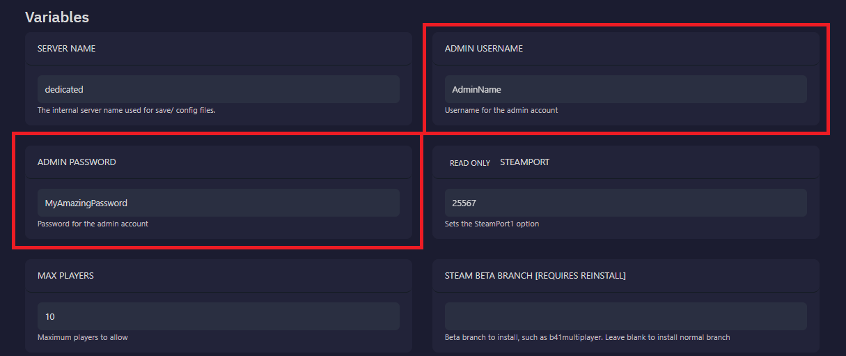 Admin Usernameto whatever you wish - Set the